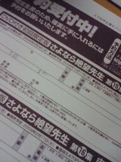 2日でレポート2つ仕上げた!1晩1レポートのペースです…! そのせいで昼間は授業中起きてるのに必死。汗 日曜と月曜にはテスト勉強始めないとまずいから、土曜までにせめて後1つ終わらすぞおっ レポートはテンションがノッてこないと書けないので、課題内容を自分に興味のあることと関連付けて書いているのですが。 さすがにコミュニケーションの問題と薩長同盟を結びつけるのは無理があったかな…笑 あーーあまり何も考えずに書けるブログはすごく落ち着きます。 やっぱり自分の書きたいものを書ける場所があるっていうのは大事なことだよね。 ストレスはっさーん☆ だからレポートやってるときって、無性にブログ更新したくなるんだよねー 勉強中に突然部屋の掃除がしたくなるのと同じ原理! さいごに。 そそくさと予約した私。自重。 初回限定版DVD付きコミックスって。笑 あああ講談社とスタチャに踊らされている…! という訳で15集が出る10月までに、単行本を集めておかないと☆(5巻までは買った) なんだか…昔は声優さんに関してはお金の使わない応援をするぞっと思っていたのにいつの間にかこんなことに。笑 2008.07.09 Wed 00:21:172008.07.08 Tue 15:08:39「片想いの小さな恋」聴きました!(@ネオアン2期EDにて)